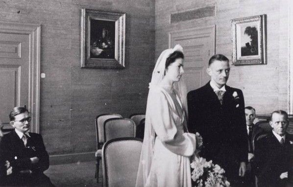De heugelijke gebeurtenis wordt vastgelegd door Johan Lodewijk Thadeus (Joop) Colson 1901-1966, 25 jaar fotograaf van de burgerlijke stand in Amsterdam, journalist en later bewoner van Kasteel Groeneveld in Baarn.
