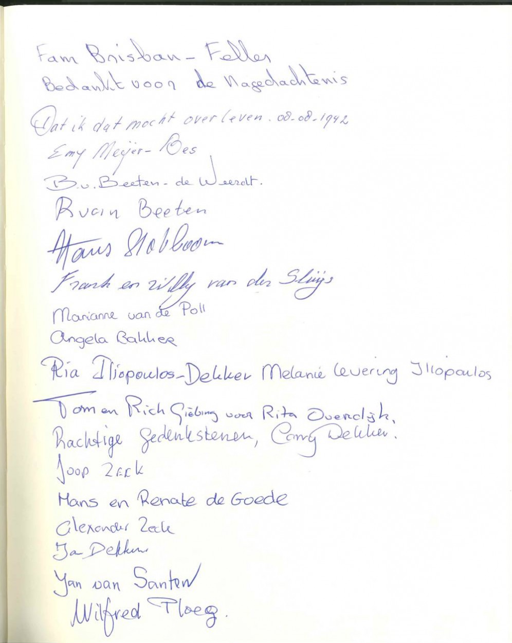 Mijn broer en ik willen jullie hartelijk bedanken voor het vele werk wat jullie hebben gedaan voor de slachttoffers van 7 mei 1945 op de Dam.