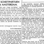 Lees verder: Trouw 8 mei 1945 editie AmsterdamDE SCHIETPARTIJEN IN AMSTERDAM. Indien bij onze „trage bevrijding” nog een element miste om het scherpe contrast tusschen vrijheid, vrede en bezetting, oorlog te onderlijnen, dan hebben dit wel de hevige vuurgevechten geleverd, die gisteren, den derden bevrijdingsdag, aan den vooravond van den „Victory-day of Europe”, in de hoofdstad des lands, in het centrum en in…