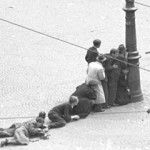 Lees verder: Hansy de MaijerPlotseling gebeurde het. Vanaf de Grote Club op de hoek van de Dam en de Kalverstraat werd er geschoten door achtergebleven Duitse militairen die de capitulatie niet wilden aanvaarden. Achter het paleis weigerden Duitse marinesoldaten zich te laten ontwapenen. Toen er ook nog vanaf het dak van het postkantoor werd geschoten brak er volledige paniek…