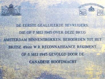 Het was verzetsman Tonny van Renterghem die het misverstand uit de weg ruimde dat het de Canadezen waren die die dag Amsterdam bereikten. Door zijn inspanning werd in 1995 een bronzen plaquette op de Berlagebrug geplaatst, waarop staat dat het de Britten waren die Amsterdam op 7 mei als eerste bevrijders binnenreden. Ze waren onderdeel van een Britse verkenningseenheid, tijdelijk ingedeeld bij het Canadese leger. Op 8 mei volgde de Canadese hoofdmacht.