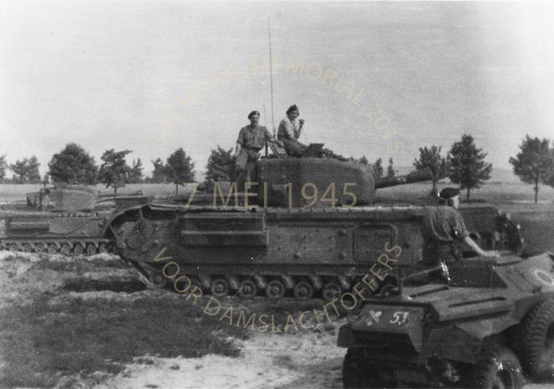 Leonard Marsland Gander, journalist van de Daily Telegraph, schreef in een artikel dat in The War Illustrated en in Nederlandse vertaling in het Lichtspoor verscheen, dat hij op de 7e mei samen met Redfern in een jeep klom, in de voorhoede van de Britse 49e West Riding infanteriedivisie, onderdeel van het 1e Canadese Legerkorps. Bijnaam van de divisie was The Polar Bears, omdat deze aan het begin van de Tweede Wereldoorlog had gevochten bij de Slag om Noorwegen en een deel ervan op IJsland werd gestationeerd. De voorhoede, het Reconnaissance (Recce) Regiment met Majoor Taite als onderbevelhebber (Taite was commandant van het B-squadron als vervanger van de eigenlijke, maar gewond geraakte commandant), was vanuit Otterlo via Hilversum naar Amsterdam gereden. No. 1 Troop (twee zware en twee lichte wagens) onder leiding van luitenant George Bowman en No. 4 Troop (zes Bren gun carriers) onder luitenant John Rafferty.