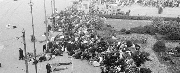 Als 14-jarige heb ik een echte schietpartij meegemaakt. Op maandag 7 mei 1945 stond ik op de Dam samen met vele duizenden Amsterdammers te wachten op de aankomst van de Canadezen. Het Duitse leger had zich formeel al overgegeven, dus was er niets aan de hand. Plotseling werd er geschoten. Duitse militairen, die in feite nog niet hadden ingeleverd, raakten in gevecht met gewapende Nederlanders van de Ondergrondse, daar waar de Kalverstraat op de Dam uitkomt. Dus ik holde de andere kant op, tussen de Bijenkorf en Krasnapolsky door de Warmoesstraat in, de Zeedijk op, langs de St. Nicolaaskerk, om het Centraal station heen naar de Valkenwegpont. Soms keek ik achterom en dan zag ik ze weer: met paard en wagen. Een beeld van transport van Duits materieel, dat blijkbaar via de Populierlaan van A naar B werd gebracht. Iets wat ik vanuit ons huis heb zien gebeuren. Kennelijk was ik in paniek.