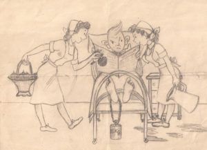 Jan en de verpleegsters (tekening met vers uit archief Sjouk Sytstra)