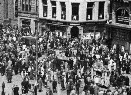 Aangekomen op de Dam heerste er een feestelijke stemming. Er draaide zelfs een draaiorgel.