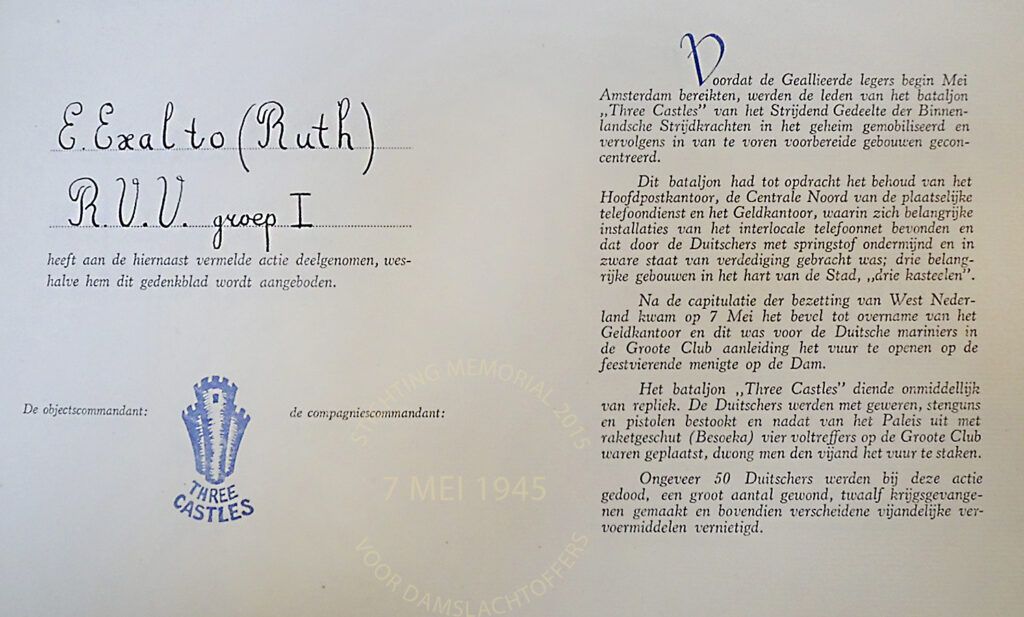 * Dit artikel is een iets aangepaste en met noten aangevulde versie van ‘De verzetszussen Thea en Else Exalto in: Drama op de Dam, 7 mei 1945.