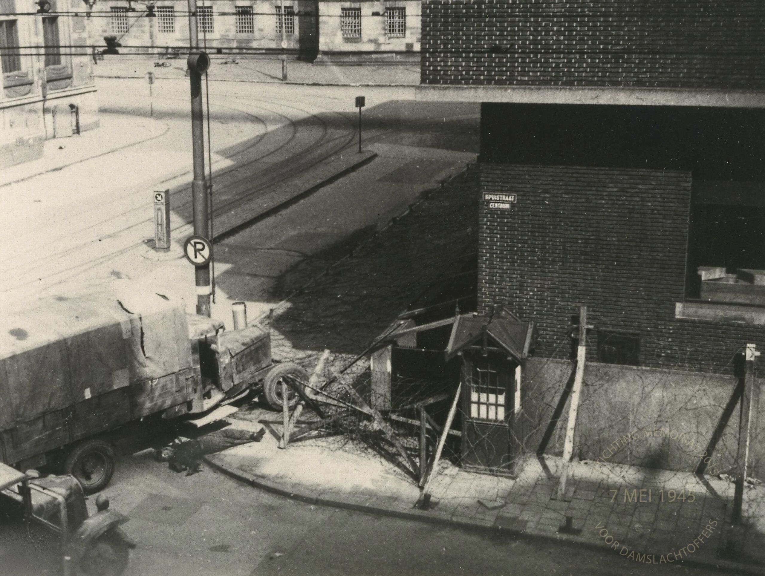 Het verhaal van de later – o.a. van de groene brievenbus – bekende ontwerper Friso Kramer (1922-2019), te zien in Andere Tijden, wordt – naast een aantal foto’s – bevestigd door een beschrijving van het incident in De Waarheid, 8 mei 1945: ‘Vanuit de eerste verdieping van het gebouw der Kasvereniging worden twee wagens van de Wehrmacht, bemand met schietende Nazi’s, onschadelijk gemaakt. Het eerste schot van den B.S.-er treft de voorband van de eerste auto; de wagen vliegt tegen het trottoir; twee der Nazi’s worden door welgerichte schoten gedood. De andere steken de handen omhoog: “Bitte nicht schiessen, nicht schiessen”.’ [Kasvereniging: later Kas Bank, nu o.a. W Hotels, gelegen tussen Spuistraat en Singel; auteur]